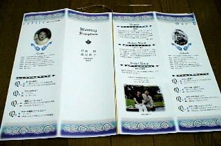 2人のプロフィールをつくって席次表の裏に載せました。1部1500円程度 かかりました。子供のころの写真は可愛いと好評でした。また、この紙には 「ハネムーンで何処に行くか」とか「新居のご案内」も載せることが出来ます。